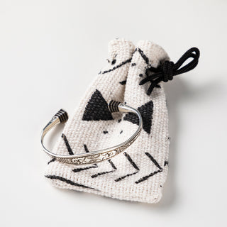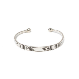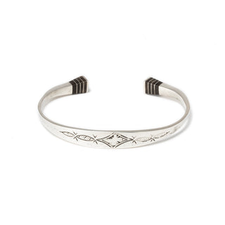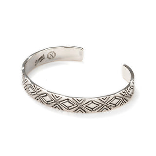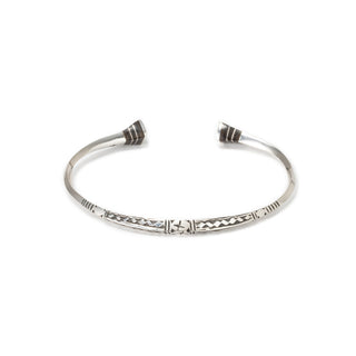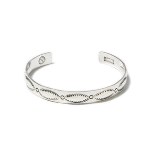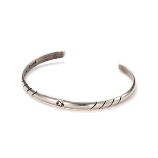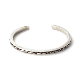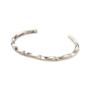 繊細な曲線で手首に個性を加えるシルバーバングル