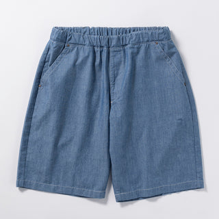 掲載体型不問のイージーショーツを爽やかシャンブレーで
