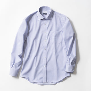 World Traveler リンクルフリーシャツ (ブルー小ヘリンボーン)