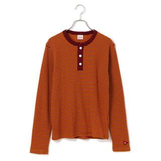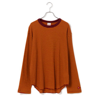 マルチボーダーワッフル ヘムラウンド クルーネック長袖
