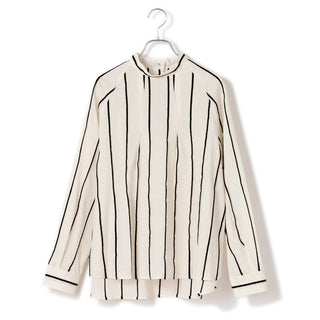 スタンドカラーとストライプ柄がモードな雰囲気。