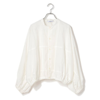 小ぶりの襟とギャザーが、こなれ感を演出。