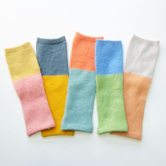 ふわふわの肌触りのアームウォーマー兼レッグウォーマー。シャーベットのような色合いがキュートで暗くなりがちな冬の装いを明るくしてくれる!