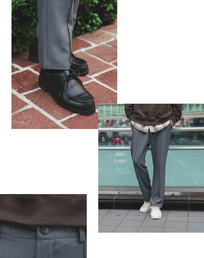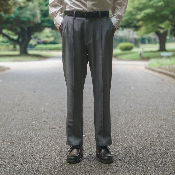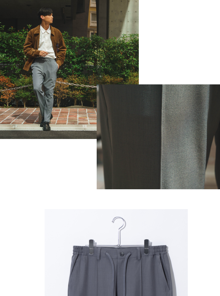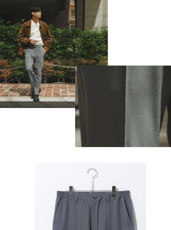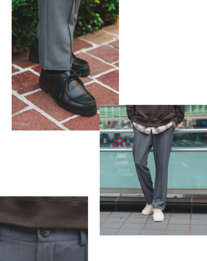 どんな靴、どんなスタイルにも、自然に馴染む。本格革靴から個性的なスニーカーまで、違和感のない万能バランス。計算されたパターン設計は、美脚ラインをキープしながら快適な穿き心地を実現。ドローコードは内側にしまうこともでき、ベルトループも付属する。スタイルもしっかり整う、最高の美脚パンツ。
