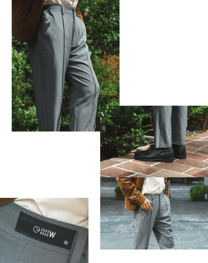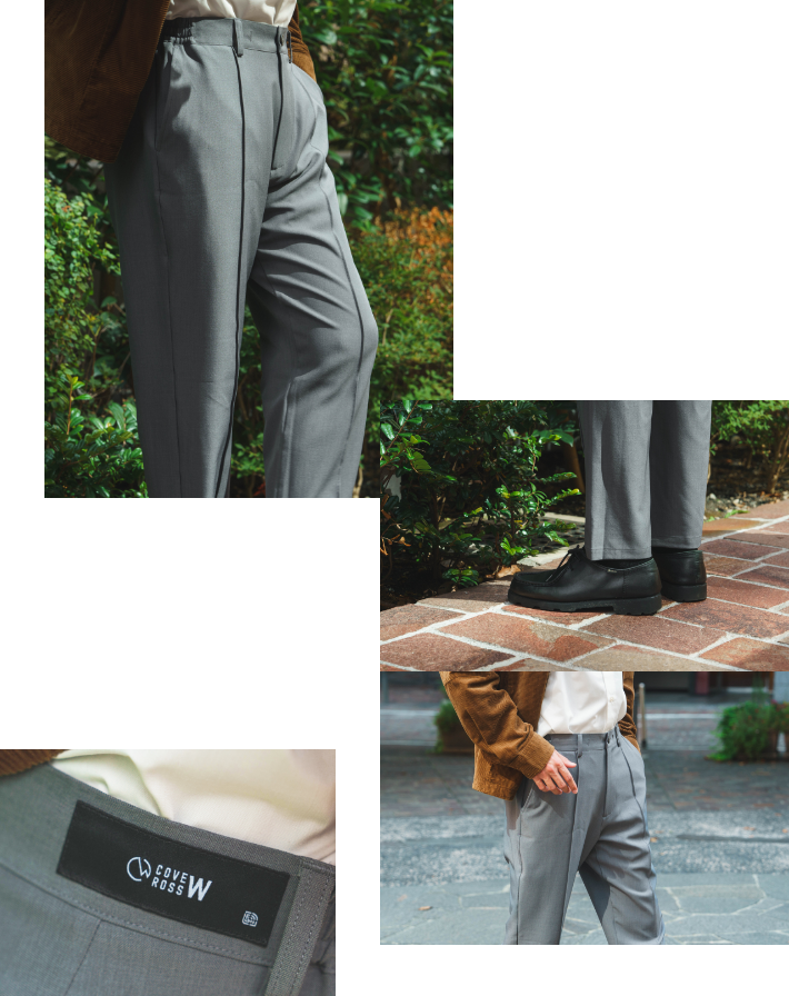 そこでCOVEROSS Wは、高機能セラミクス素材「セラメア」を採用した、仕事も休日も出張も、すべてのシーンが“整い続ける”スラックスを開発。最後まで見ていただければきっとあなたの確信の一着になるはずです!