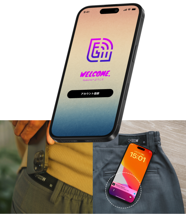 前作のデニムに引き続き、服をデジタル連携させ、さまざまな価値を提供するサービス“tsukumo”に対応。専用アプリの今冬のリリースに向け最終準備中だ。長く愛用するほどオリジナルキャラクターが育ち、様々なコンテンツが楽しめる。まずは腰のパッチにスマホ(NFC対応)をタッチしてティザーサイトをチェック!!