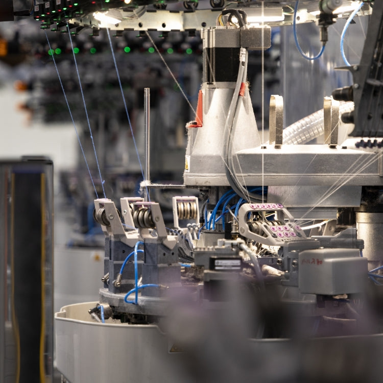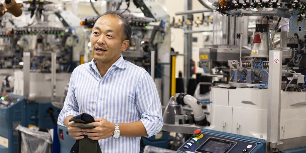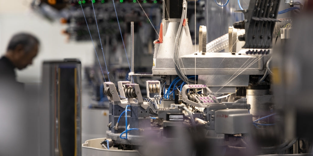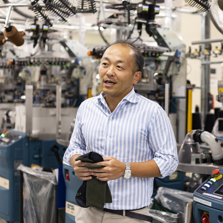 ソックス業界に革新をもたらした、イタリアの最新機器「LONATI」を導入。筒状に編まれる一般的な機械に対し、こちらはつま先部分まで自動で縫製できます。よりスピーディに靴下が作れ、生産効率が上がりました。