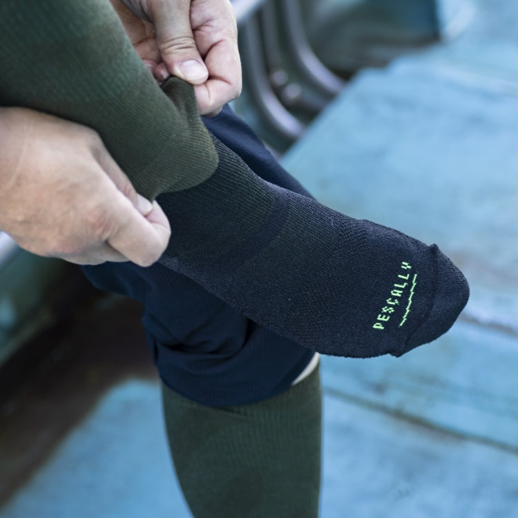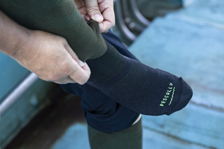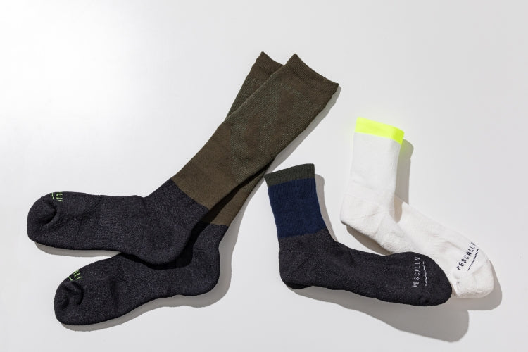 「僕らはぺスカリーに信頼を加えたいと思ったんです。世の中には既に高機能な靴下が山ほどある。その中で、富山の漁師さんが安心できる靴下を作ることが、結果的に一般ユーザーに喜んでもらえるブランドになると確信しています」と話した助野の中地さん。ぺスカリーは漁師が船上で耐えられる高機能でありながら、決して漁師だけのソックスではありません。私たちが街でモンベルのシェルを羽織り、ニューバランスのランニングシューズを履くように、アウトドアやスポーツのプロ仕様に作られたアイテムが、日常着として定着しています。ぺスカリーも、“漁師のお墨付き”を得た日常の靴下です。ビジネスで、レジャーで、そして街で。「もっと気持ち良く歩きたい」「足へのストレスを減らしたい」「コーディネイトにも合わせたい」そんな人の日常に、ぜひお試し頂きたい靴下です。