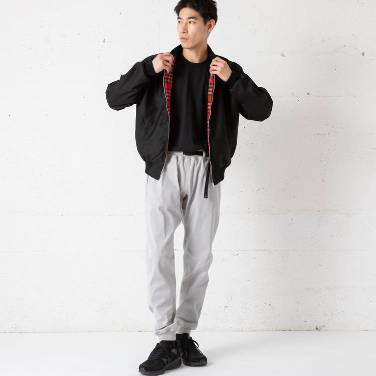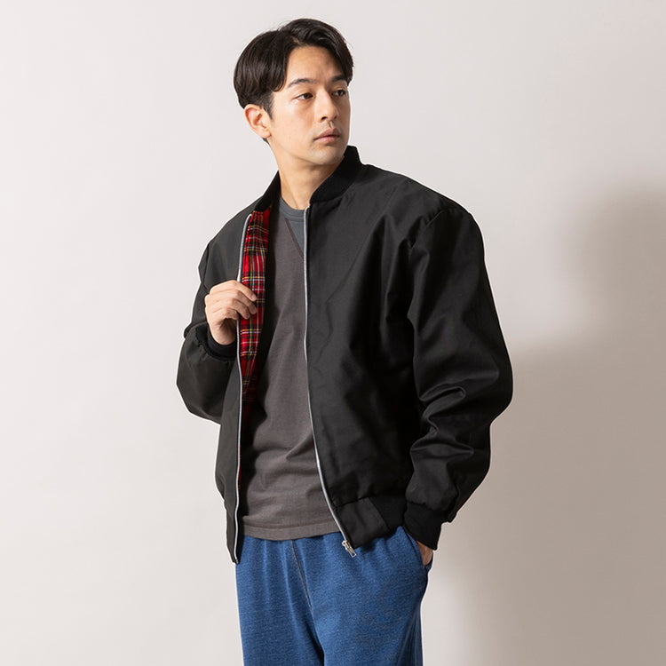 イングランド地方の北部、ウエストヨークシャーエリアにて、家内制手工業により多数のブランドのOEMを手掛けるファクトリーブランドPENNY FARTHING(ペニーファーシング)。今作は、定番のハリントンジャケットをベースに、ミリタリーのフライトJKテイストに仕上げたモデル。小ぶりなリブ襟を採用しミリタリーのアクセントをプラスしています。耐久性の高いコットン×ポリエステル素材も嬉しいポイント。裏地には王道のレッドタータンチェックを用いたトラディショナルなスタイルも魅力です。リブ裾なので丈感を調節しやすく、ボリュームも控えめだからコンパクトに着まわせます。ガチな軍モノは苦手って方にも◎。幅広いシーズンに対応できるのでぜひお試しください。ハリントンジャケットタイプも展開中!